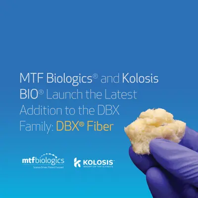 EDISON, N.J. & SALT LAKE CITY--(BUSINESS WIRE)--MTF Biologics, a global nonprofit organization that saves and heals lives by advancing tissue and organ donation, transplantation, and research, and Kolosis®, an industry leading pure-play surgical biologics company, today announced the launch of DBX Fiber®, the latest addition to the … [Read More...] about MTF Biologics® and Kolosis BIO® Launch the Latest Addition to the DBX Family: DBX® Fiber