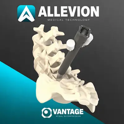 BOCA RATON, Fla.--(BUSINESS WIRE)--Allevion Medical today announced the FDA clearance of Vantage™, a fully disposable, sterile system designed to simplify and enhance minimally invasive lumbar decompression procedures. Developed to address pain associated with hypertrophic bone growth, Vantage™ enables targeted decompression through a patented … [Read More...] about Allevion Medical™ Receives 510K Clearance for Vantage™ — A Fully Disposable Kit Featuring a Novel Approach to Spinal Decompression