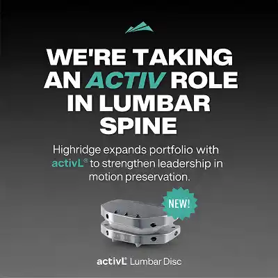 WESTMINSTER, Colo., Feb. 26, 2026 (GLOBE NEWSWIRE) -- Highridge Medical, a leading privately held global spine company with a portfolio supported by extensive clinical evidence, today announced the U.S. limited launch of the activL® Lumbar Disc, along with the successful completion of initial surgeries at multiple disc replacement centers nationwide. As part of the launch, Highridge Medical … [Read More...] about Highridge Medical Begins a Limited Launch of the activL® Lumbar Disc with Strong Early Surgeon Adoption