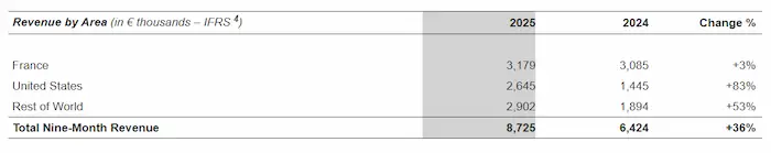 - Nine-month 2025 revenue of €8.7 million, up +36% compared to the same period last year