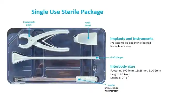 The KG 2 Surge system comes with the interbody device pre-assembled to the cannula in a single-use sterile tray. The surgeon opens the tray with a ready-to-use system in their hands. The learning curve is flat for operating room staff, and the KG 2 Surge system works equally well for both MIS or open techniques.  An associated reusable instrument tray allows for implant revision at any step if implant repositioning or removal is necessary.