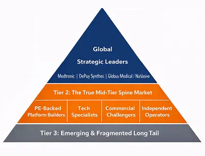 Today’s spine market behaves like a three-layer pyramid. Each tier operates under different economic physics, commercial expectations and strategic degrees of freedom. Understanding these layers is essential to interpreting where consolidation is actually heading.