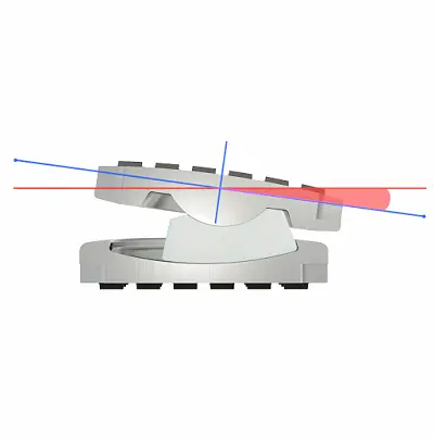 The implant’s design incorporates a double centre of rotation, which ensures optimal self-centering of the prosthesis and limits excessive movement.